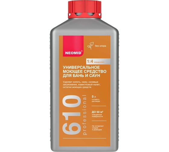 NEOMID 610 — моющее средство для бань, саун, душевых кабин и других помещений с повышенной влажностью.