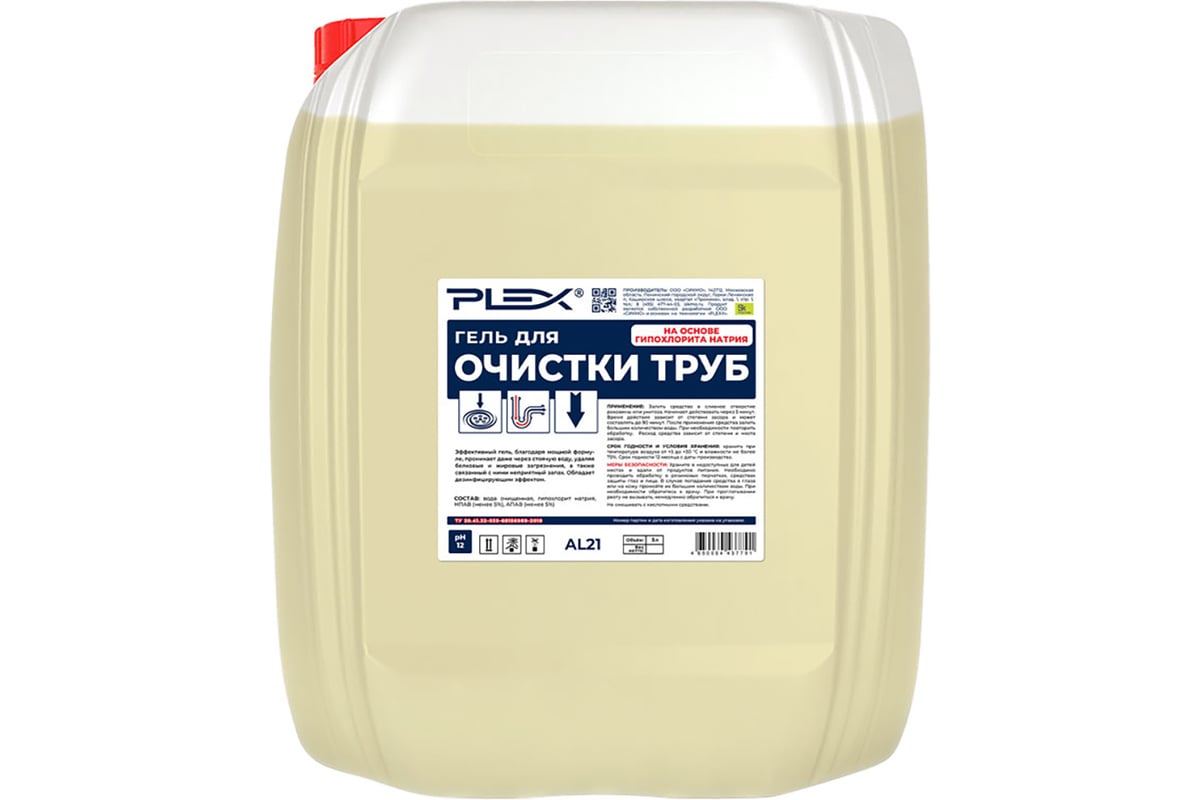 Средство от засоров PLEX (гель на основе хлора) 20 л УТ000007144