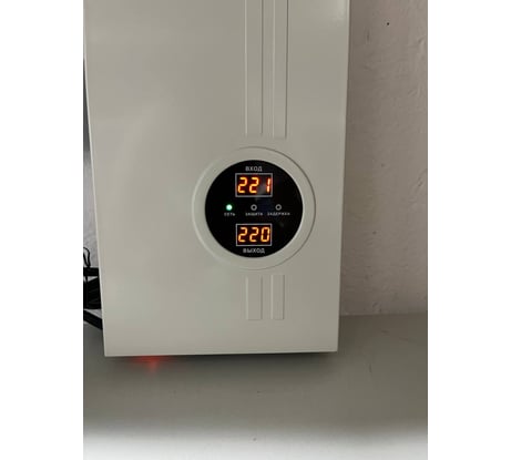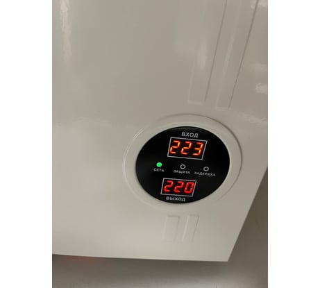 Стабилизатор выравнивает напряжение с точность ±10 %. Если напряжение на выходе находится в допустимом диапазоне (по ГОСТ 13109-97РФ и ГОСТ 29322-2014) индикатор "выход" показывает 220.