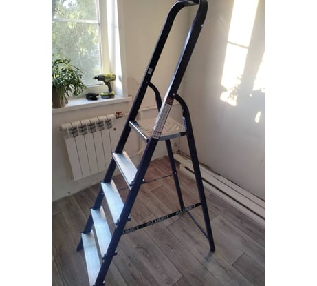 "Стальная" в названии подкупает, "алюм" в названии настораживает. Стремянка лёгкая, поэтому стали в неё, наверное, сильно меньше аллюминия. Средней устойчивости, средней прочности, моим 90 кг на ней приемлимо, но не комфортно. 150 кг говорите, предел? Очень оптимистично. В общем и целом, упаковка целая, пластиковые башмаки, заклёпки - все на месте. В меру ровная, в меру расхлябанная, цена хорошая. Доставка своевременная.