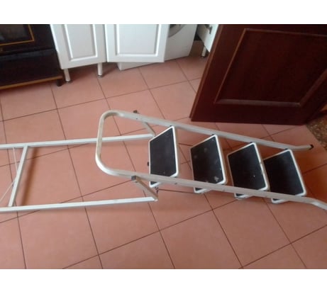 Купил для супруги. Принес домой, примерил супругу, с верхней ступеньки не достает до потолка 3-4 см, высота потолков 2,57-2,60. Для бараньего веса супруги, конструкция отличная, да и мои 90кг держит неплохо, но не внушает доверия конструкция мне, а именно я бы добавил перемычку или лучше строп между ножками, для большей упругости и защиты от разъезжания ножек. Устойчивость хорошая, стоит и думаю стоять будет. Достаточно компактна, но высокая беспалево не спрячешь, в салом машины входит легко. При распаковке обнаружил сколы и царапины, но это не критично, все вылечит корректор. Забрал ее 1.12.24г и в целом, пока доволен я и супруга, а это самое главное, если будет возможность далее, дополню.