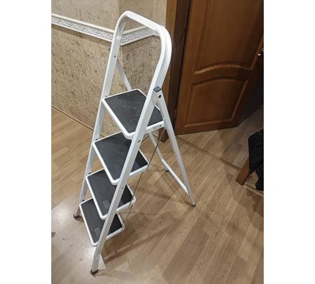 Купил для супруги. Принес домой, примерил супругу, с верхней ступеньки не достает до потолка 3-4 см, высота потолков 2,57-2,60. Для бараньего веса супруги, конструкция отличная, да и мои 90кг держит неплохо, но не внушает доверия конструкция мне, а именно я бы добавил перемычку или лучше строп между ножками, для большей упругости и защиты от разъезжания ножек. Устойчивость хорошая, стоит и думаю стоять будет. Достаточно компактна, но высокая беспалево не спрячешь, в салом машины входит легко. При распаковке обнаружил сколы и царапины, но это не критично, все вылечит корректор. Забрал ее 1.12.24г и в целом, пока доволен я и супруга, а это самое главное, если будет возможность далее, дополню.