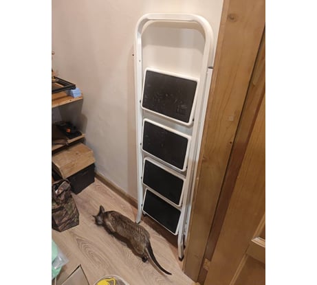 Нормальная лесенка для внутридома, когда уже есть ровный пол, взял для внутренних работ, напечатал ей ножки на 3д принтере, чтобы вмятин не оставляла на эппс, позже будет использоваться для кухни, чтобы до верхних шкафов доставать