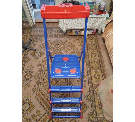 Хорошая добротная лестница. Удобно что сверху есть отделения для инструментов и крепежа.