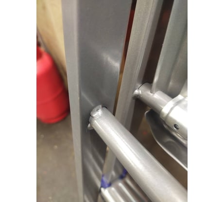 Металл мягковат. Защита углов периодически слетает, приходиться прикручивать ее саморезами. Материал лотка слабоват, плохо переносит солнечные лучи, если возить стремянку на багажнике машины, за лето выгорает и начинает ломаться кусками. Этот же лоток плохо поддается ремонту, клеи на основе цианокрилата его практически не берут. Пробовали ремонтировать нагревом с армированием трещин, помогает не на долго.