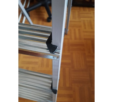 Тройное крепление стоек заднего каркаса сразвальцовкой повышает устойчивость стремянки.