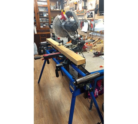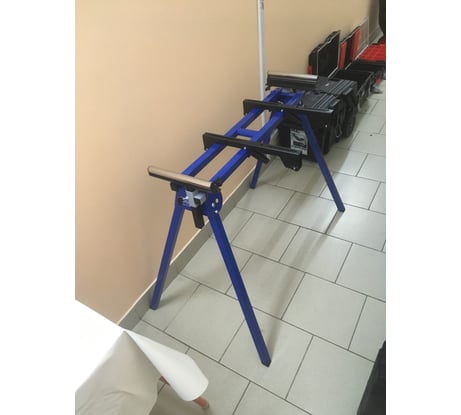 По две направляющих на выдвижные опоры, в отличие от большинства остальных. Стальной, прочный. Ножки раскладываются на защёлках за 3 секунды. Большая торцовка встала по размеру.