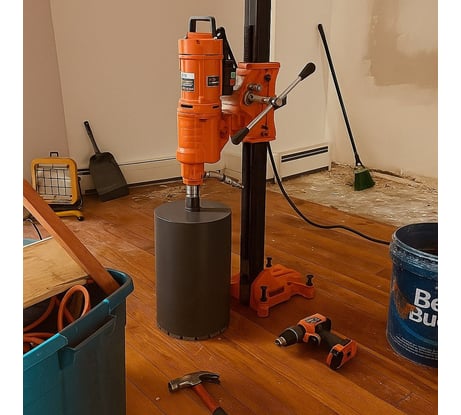 Похожий по назначению, но с чуть более мощным мотором и плавной подачей. Идеален для больших проёмов, держит место сверления стабильнее. Принцип тот же — алмазная коронка + вода, аккуратно и быстро. Нравится, работает штатно.
