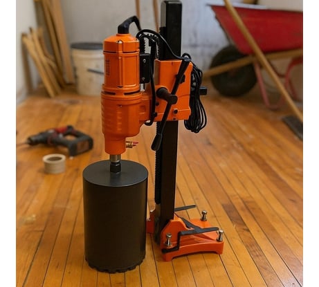 Работал с ним на объекте по реконструкции школы — сверлил отверстия под трубы в стенах из кирпича и бетона. Мощность выше, чем у бытовых моделей, но при этом не слишком громоздкий. Водяное охлаждение спасает от перегрева, особенно при долгой работе. Рукоятки с резиновым покрытием — не скользят. Из плюсов: быстрая замена коронок, чёткая регулировка угла.