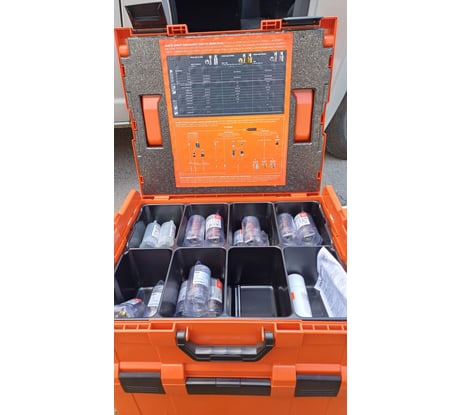 Пластмассовый чемоданчик: Хороший обзор, аккуратное и надежное размещение. Благодаря вставке для мелких деталей тут можно разместить все принадлежности, а чемоданчики L-BOXX можно легко соединять друг с другом и укладывать друг на друга.