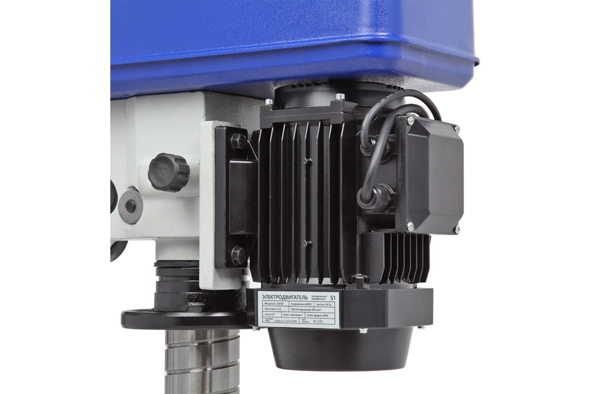 Электродвигатель асинхронный мощностью 550 Вт, режим работы S1. Модель компактная, имеет настольную установку. Основание и корпус сверлильной головки изготовлены из чугуна.