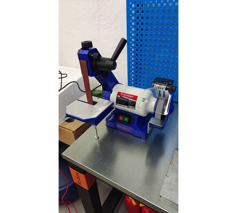 Простотаконструкции позволяет легко и быстро производить замену заточного диска и шлифовальнойленты. Рабочий стол ленточно-шлифовального узла и рабочий упор на заточном узле позволяютпрочно удерживать заготовку при выполнении различных операций.