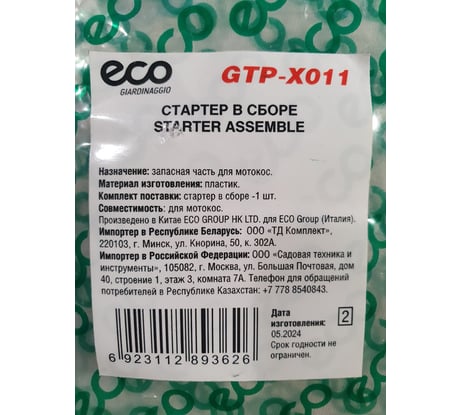 Стартер в сборе ECO GTP-X011 для триммера/мотокосы под 4 зацепа.