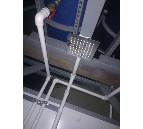 Сделан из нержавейки . Есть регулировка наклона (выставления горизонта). Поставил в летний душ