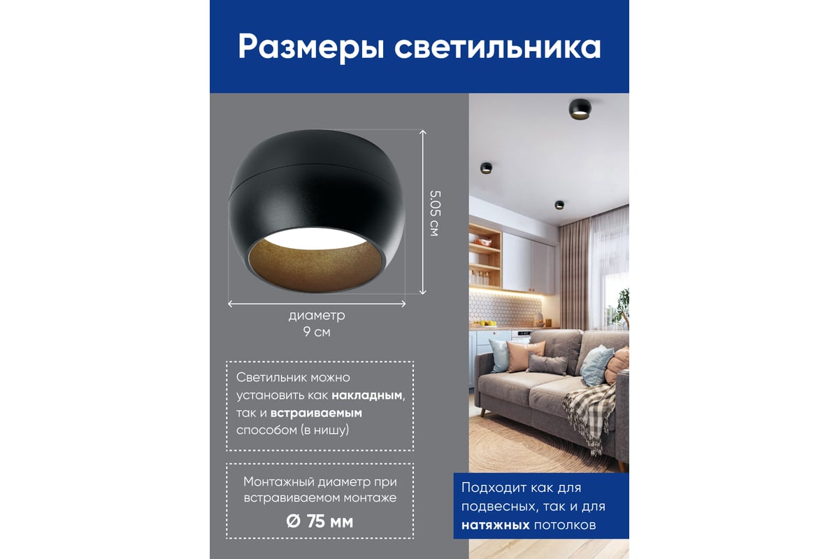Диаметр светильника:90 мм