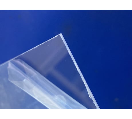 Недорогое, но вполне годное стекло. Размеры соответствуют описанию. Плёнка с обеих сторон. Обычный поликарбонат без чудес и магии. В принципе, все бюджетные стёкла одинаковые. Для продления жизни стекла рекомендую перед работой протирать силиконом: стекло дольше останется прозрачным.