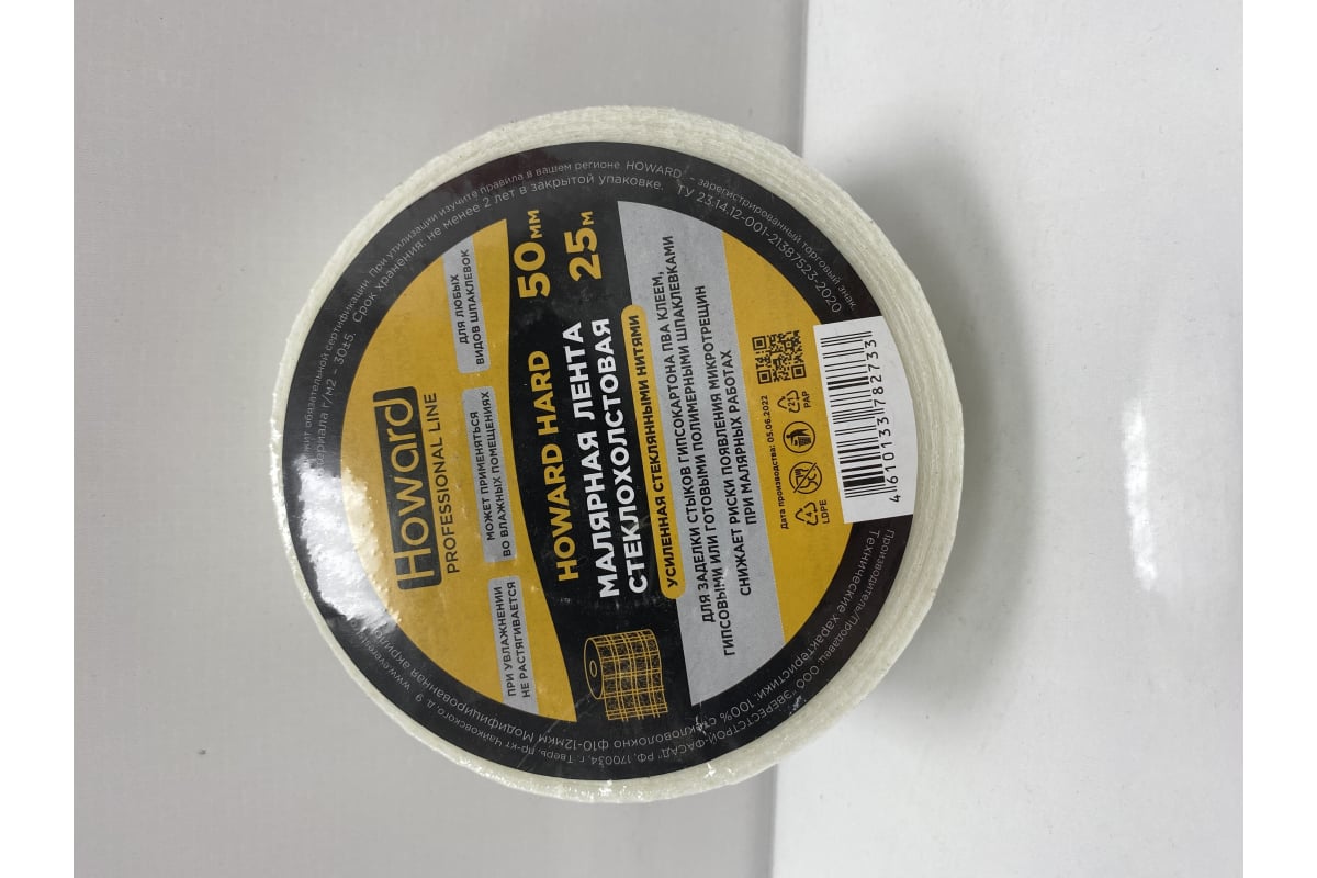 Стеклохолстовая усиленная армирующая лента для ГКЛ HOWARD 50мм х 25м ЦБ-00004203