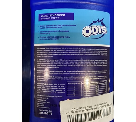 Отзывы о стеклоомывающей жидкости ODIS концентрат -70C, 1л Ds0170