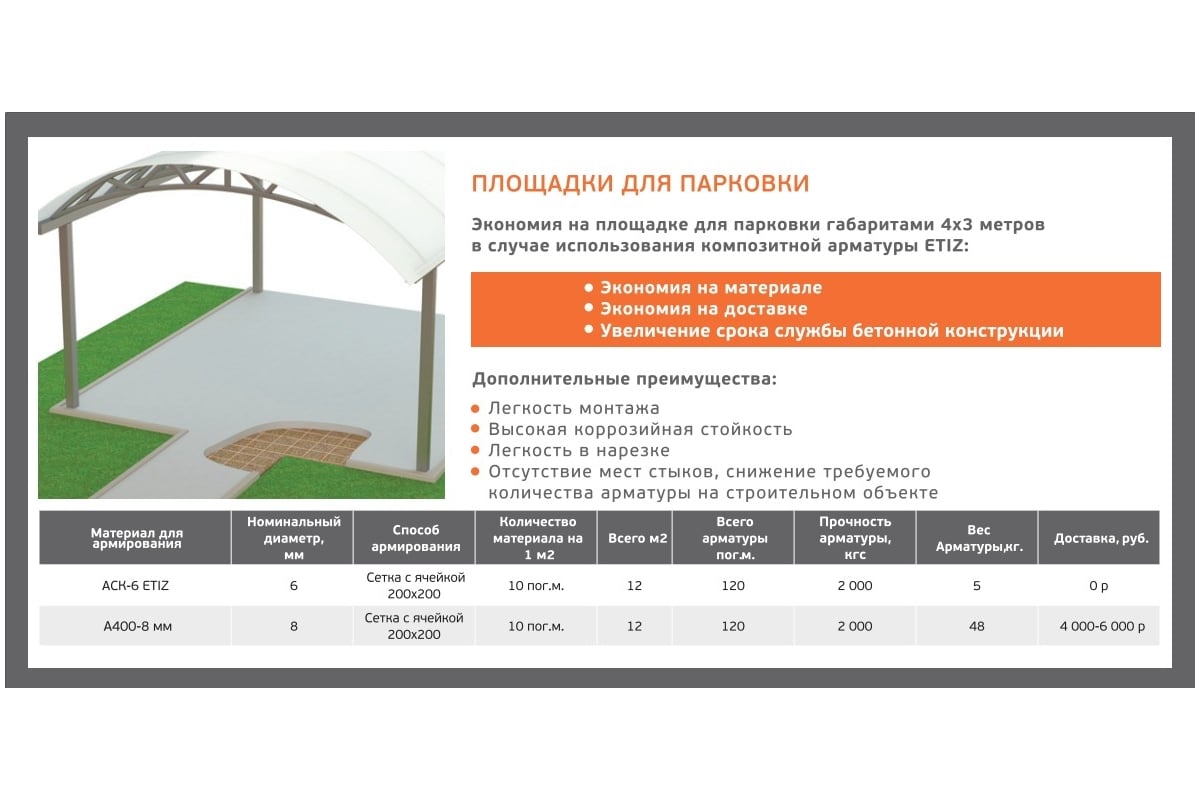 - Преимущества данной композитной арматуры перед стальной арматурой одинакового диаметра: в 2 раза прочнее