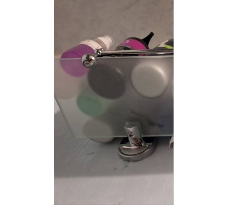 Отлично прикрепилось, смотрится элегантно. Выдерживает большое количество баночек, тюбиков. Рекомендую.