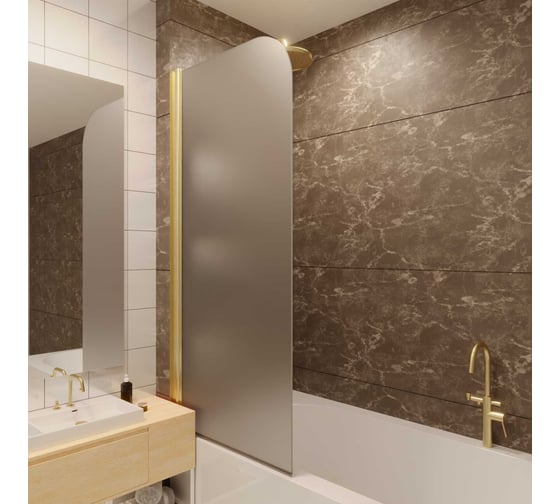 Стеклянная шторка на ванну FIXATOP 1400x600, поворотная, профиль золото матовое, стекло сатин MGSHCU1400600TURNGLDSAT