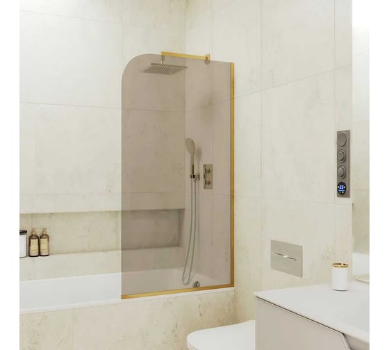 Стеклянная шторка на ванну FIXATOP 1400x740, узкий профиль золото матовое, стекло бронза MGSHCU1400740UZKIY6GLDBRZ