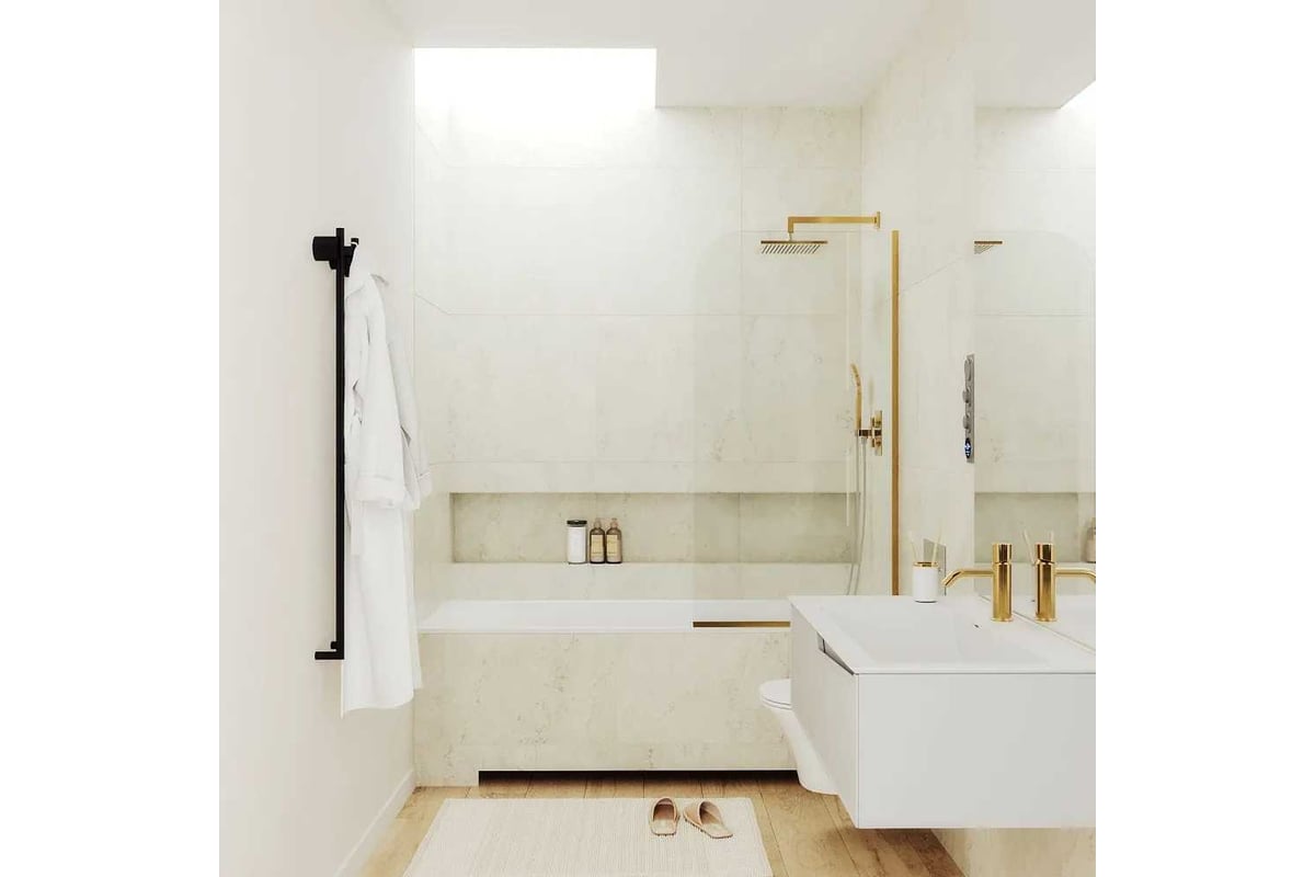 Стеклянная шторка для ванны отлично справляется со своей прямой задачей — препятствует разбрызгиванию воды по помещению. Также этот аксессуар служит украшением интерьера. Он гармонично сочетается с любым дизайном ванной за счет узкого профиля и визуальной невесомости полотна.