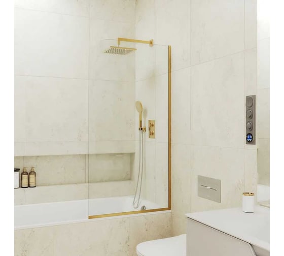 Стеклянная шторка на ванну FIXATOP 1400x740, узкий профиль золото матовое, стекло прозрачное MGSHCU1400740UZKIY6GLDPRO