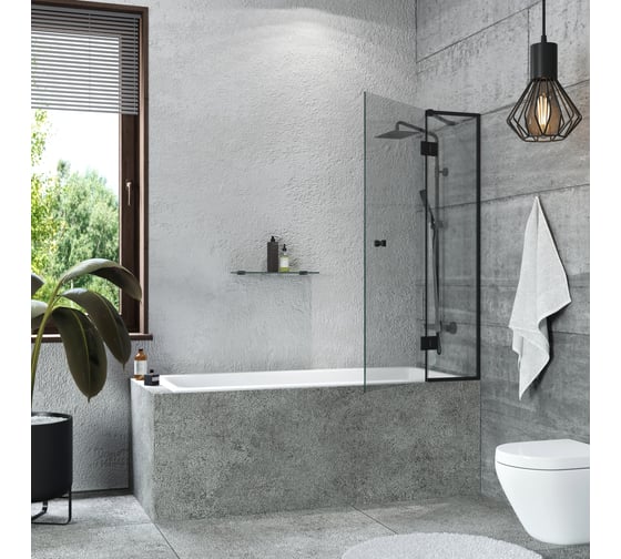 Шторка стеклянная распашная на ванну 90x140 см (30/60), профиль черного матового цвета. Подходит к классическим прямоугольным ваннам любого производителя и устанавливается на борт.
