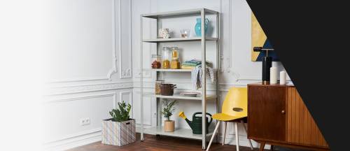 Высокий и открытый стеллаж подойдет также для офиса, магазина, склада, библиотеки, архива