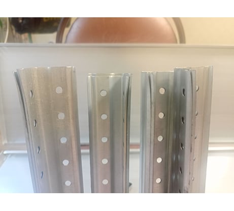 Катастрофа! В магазине распечатывать не стала, так как товар в упаковке выглядел очень солидно, к тому же предстояло везти в другой конец города на общественном транспорте. Не ожидала никакой подлянки, максимум - не полный комплект гаек/болтов или отсутствие ключа, но это же не проблема! А по факту.... 😱 Я конечно понимаю, что это тонкий металл, другого и не ожидала за такую цену, но как можно было умудриться так деформировать профиль при резке????? Это оборудование такое или руки не из того места? Что мне с этим г делать в домашних условиях, может подскажете?! И каким образом можно надеть на профиль наконечники, если на пластике угол меньше 90 градусов, а на профиле он больше 90 и вообще скруглён😕 Нет слов...Полки даже осматривать не стала 🙈