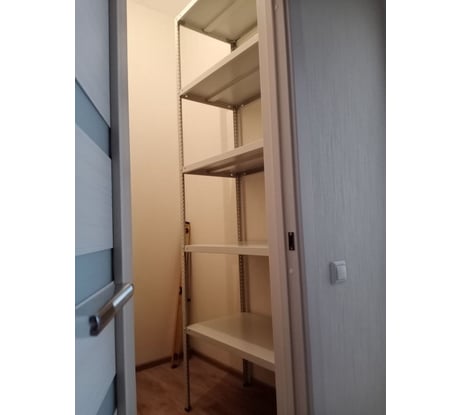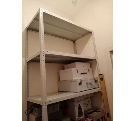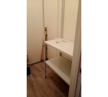 Поскольку потолки больше 3 метров нужен был стеллаж не менее 2,5 метров высотой.Вариантов таких стеллажей с глубиной полок 50 см не так много и отзывы про неполный набор крепежа отпугивают от покупки большинства. Этот стеллаж хорошо упакован, комплект полный. Была небольшая сложность при сборке - из-за особенностей помещения пришлось собирать на месте сразу в вертикальном положении, поэтому нужно было два человека. После того как затянули все болты и прикрепили к стене стал очень жесткой конструкцией. Можно нижнюю полку установить достаточно высоко от пола и под стеллажом размещается то что не обязательно хранить на полках (у нас на выкатных площадках тяжелый инструмент который редко используем). Не очень удобно подлазить инструментом чтобы затянуть крепления (использовали трещетку, не сразу подхватывала) Правда, спасибо строителям в новостройках,поскольку пол не идеально ровный одна нога не встала, пришлось придумывать подкладку под пластиковую накладку на стойку.