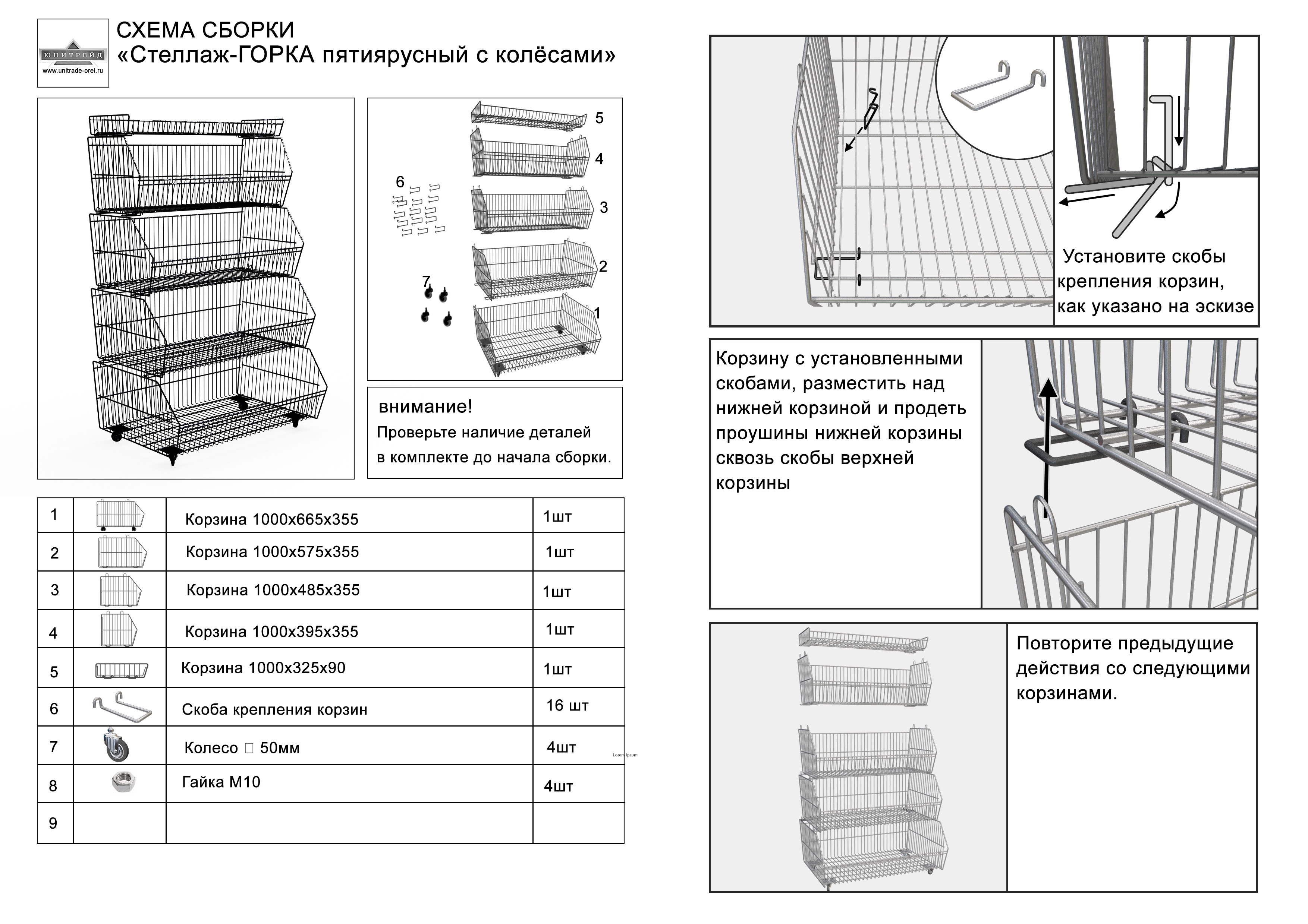 Стеллаж-горка пятиярусный Юнитрейд 600х665х1510мм с колесами, о., 04.04.008.01.14.0001.00