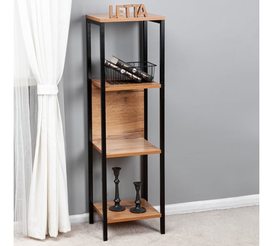 Простоту сборки: Стеллажи LETTA собирается помощью отвертки и шестигранного ключа (который будет в комплекте).Вам не потребуется больших усилий, чтобы собрать металлический стеллаж деревянный напольный для ванной шкаф для книг лофт 33х27х112 см.