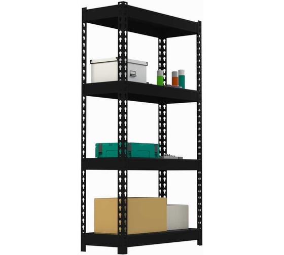 Стеллаж Metalex HARD 4 полки (чёрный) используется для хранения вещей и документов в офисах, на производстве, на складах, в магазинах, в доме, на балконах, на дачах, в гос. учреждениях. Нагрузка на стеллаж: до 1000 кг.