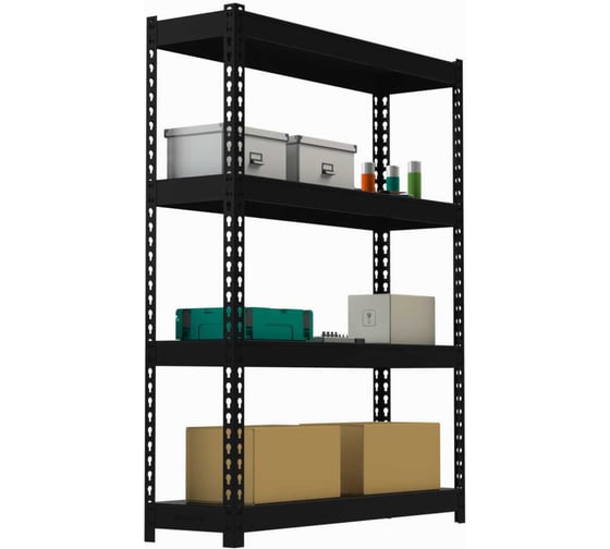 Стеллаж Metalex HARD 4 полки (чёрный) используется для хранения вещей и документов в офисах, на производстве, на складах, в магазинах, в доме, на балконах, на дачах, в гос. учреждениях. Нагрузка на стеллаж: до 1000 кг.