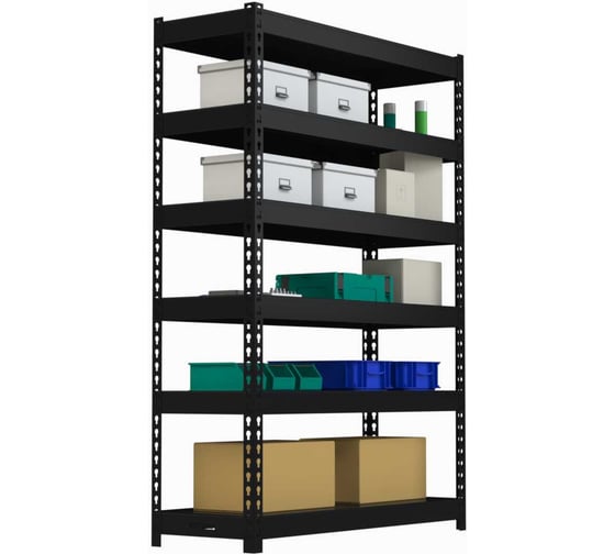 Стеллаж Metalex HARD 6 полок (чёрный) используется для хранения вещей и документов в офисах, на производстве, на складах, в магазинах, в доме, на балконах, на дачах, в гос. учреждениях. Нагрузка на стеллаж: до 1000 кг.