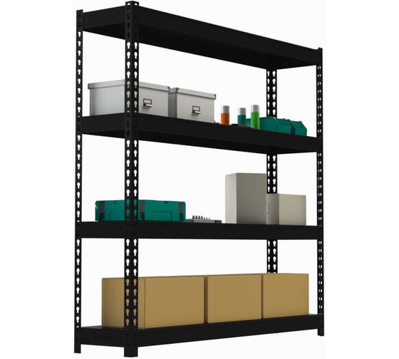 Стеллаж Metalex HARD 4 полки (чёрный) используется для хранения вещей и документов в офисах, на производстве, на складах, в магазинах, в доме, на балконах, на дачах, в гос. учреждениях. Нагрузка на стеллаж: до 1000 кг.