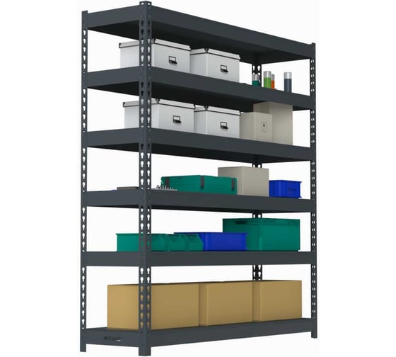 Стеллаж Metalex HARD 6 полок (серый) используется для хранения вещей и документов в офисах, на производстве, на складах, в магазинах, в доме, на балконах, на дачах, в гос. учреждениях. Нагрузка на стеллаж: до 1000 кг.