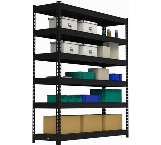 Стеллаж Metalex HARD 6 полок (чёрный) используется для хранения вещей и документов в офисах, на производстве, на складах, в магазинах, в доме, на балконах, на дачах, в гос. учреждениях. Нагрузка на стеллаж: до 1000 кг.