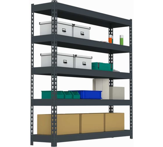 Стеллаж Metalex HARD 5 полок (серый) используется для хранения вещей и документов в офисах, на производстве, на складах, в магазинах, в доме, на балконах, на дачах, в гос. учреждениях. Нагрузка на стеллаж: до 1000 кг.