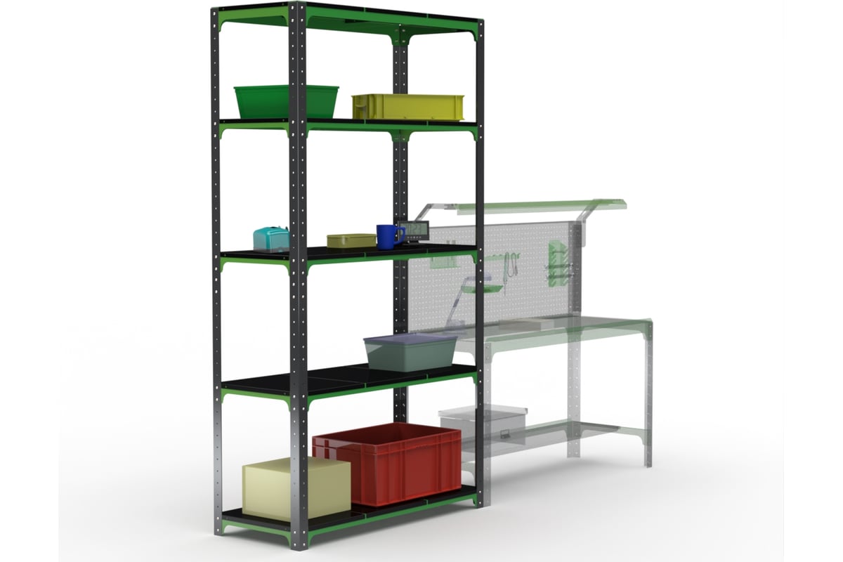- Максимум распределённой нагрузки на весь стеллаж составляет до 400 кг (зависит от конкретной модели)