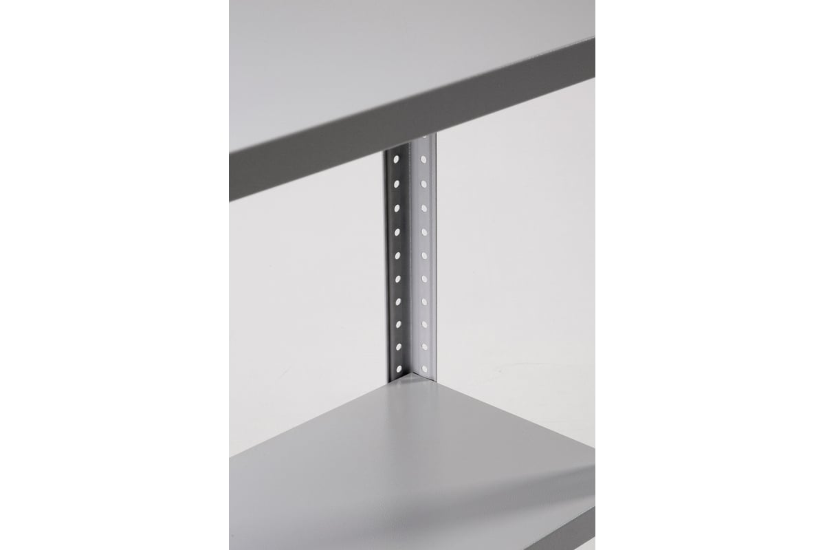 Стеллаж ООО ФУРАМА СТФЛ 1500х700х500 мм 3 полки СТФЛ157050-3 поставляется в разобранном виде. Модель включает в себя дополнительные углы, которые увеличивают жесткость конструкции. Уголки жесткости (16 шт.) крепятся только на верхнюю и нижнюю полку по 8 шт., полки между ними крепятся на болты и гайки. Можно менять положение полок с шагом в 25 мм. Каждая стойка в 1000 мм и 500 мм (при создании стойки 1,5 метра) монтируется соединителем с помощью болтов и гаек.