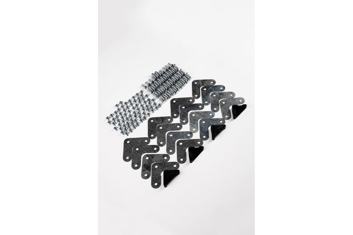 - Уголок жесткости, оцинкованный - 16 шт. (крепятся только на верхнюю и нижнюю полку (по 8 шт.)