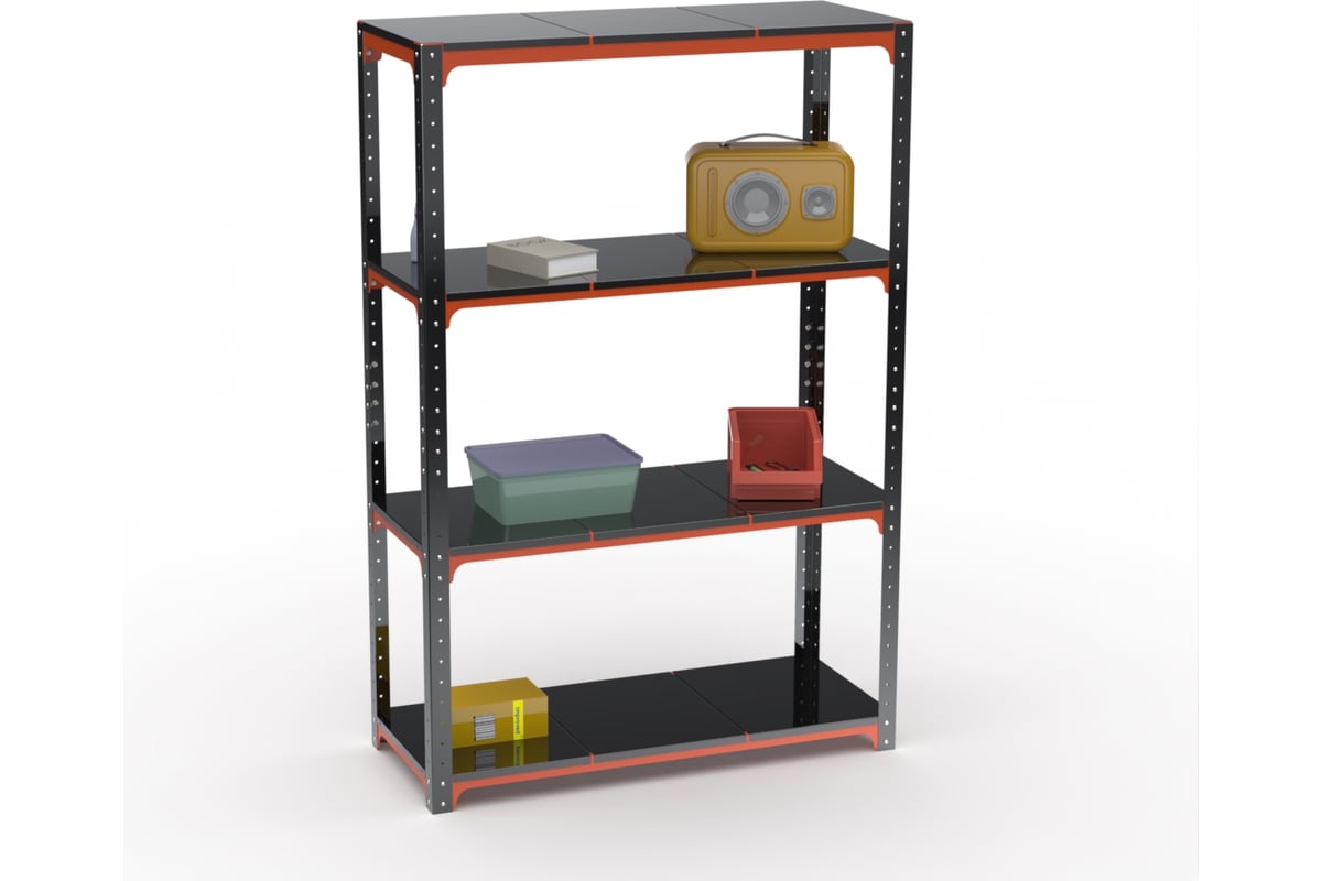Стеллаж ООО Металекс Kit Comfort 2000х1500х300 мм, 4 полки, оранжево-чёрный 202524