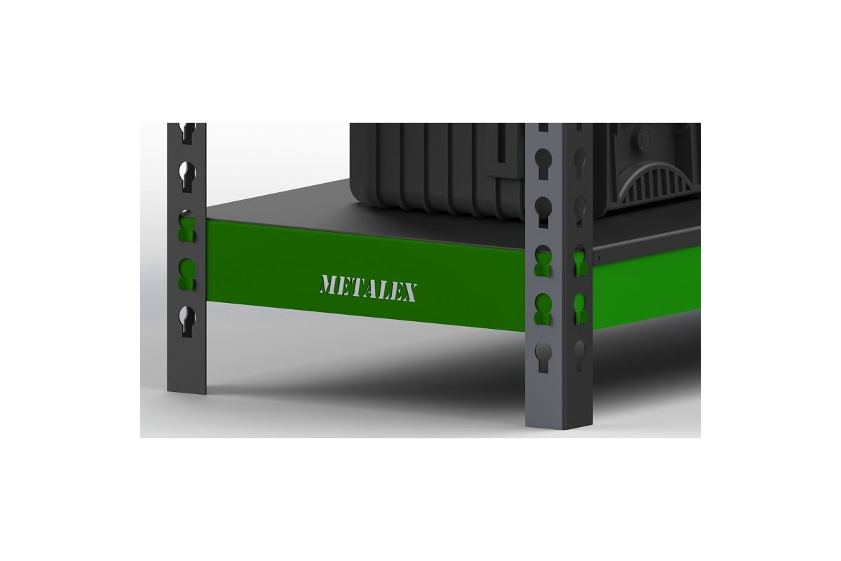 Стеллаж ООО Металекс Metalex HARD 2200x1000x600 5 полок SHDV221060 используется для хранения вещей и документов в офисах, на производстве, на складах, в магазинах, в доме, на балконах, на дачах, в гос. учреждениях. Нагрузка на стеллаж: до 1000 кг. Данный стеллаж поставляется с металлическими полками из стали толщиной 2 мм и имеет дополнительные ребра жесткости. Стойки также выполнены из 2-х миллиметровой стали. Безболтовое соединение обеспечит легкую и быструю сборку. Порошковая покраска позволит сохранить стеллаж в первозданном виде на много лет.Цвет: тёмно-серый+зелёный.