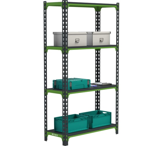 Стеллаж ООО Металекс MID 2000x1000x500 SMD201050 используется для хранения вещей и документов в офисах, на производстве, на складах, в магазинах, в доме, на балконах, на дачах, в гос. учреждениях. Нагрузка на стеллаж: до 800 кг.Цвет: тёмно-серый+зелёный.