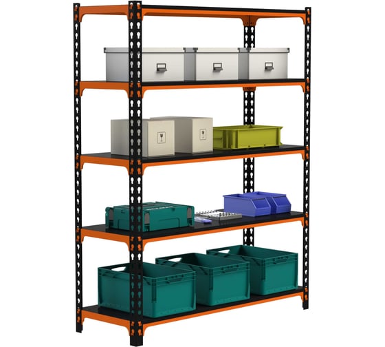 Стеллаж ООО Металекс MID 2000x1400x500 5 полок оранжево-чёрный 107068
