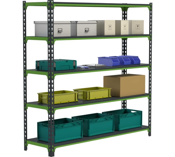 Стеллаж ООО Металекс MID 2000x1600x500, 5 полок SMDV201650 используется для хранения вещей и документов в офисах, на производстве, на складах, в магазинах, в доме, на балконах, на дачах, в гос. учреждениях. Нагрузка на стеллаж: до 800 кг. Данный стеллаж поставляется с металлическими полками из стали толщиной 1,5 мм и имеет дополнительные ребра жесткости. Стойки также выполнены из 1,5 миллиметровой стали. Безболтовое соединение обеспечит легкую и быструю сборку. Порошковая покраска позволит сохранить стеллаж в первозданном виде много лет.Цвет: тёмно-серый+зелёный.