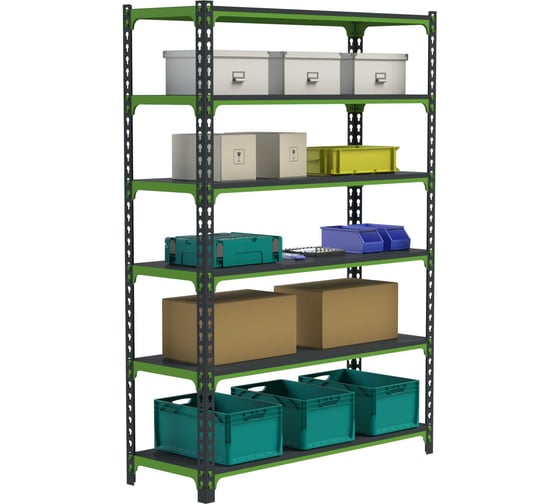 Стеллаж ООО Металекс MID 2200x1200x600 мм, 6 полок SMDVI221260 используется для хранения вещей и документов в офисах, на производстве, на складах, в магазинах, в доме, на балконах, на дачах, в гос. учреждениях. Нагрузка на стеллаж: до 800 кг Данный стеллаж поставляется с металлическими полками из стали толщиной 1,5 мм и имеют дополнительные ребра жесткости. Стойки также выполнены из стали толщиной 1,5 мм. Безболтовое соединение обеспечит легкую и быструю сборку. Порошковая покраска позволит сохранить стеллаж в первозданном виде на много лет.Цвет: тёмно-серый+зелёный.